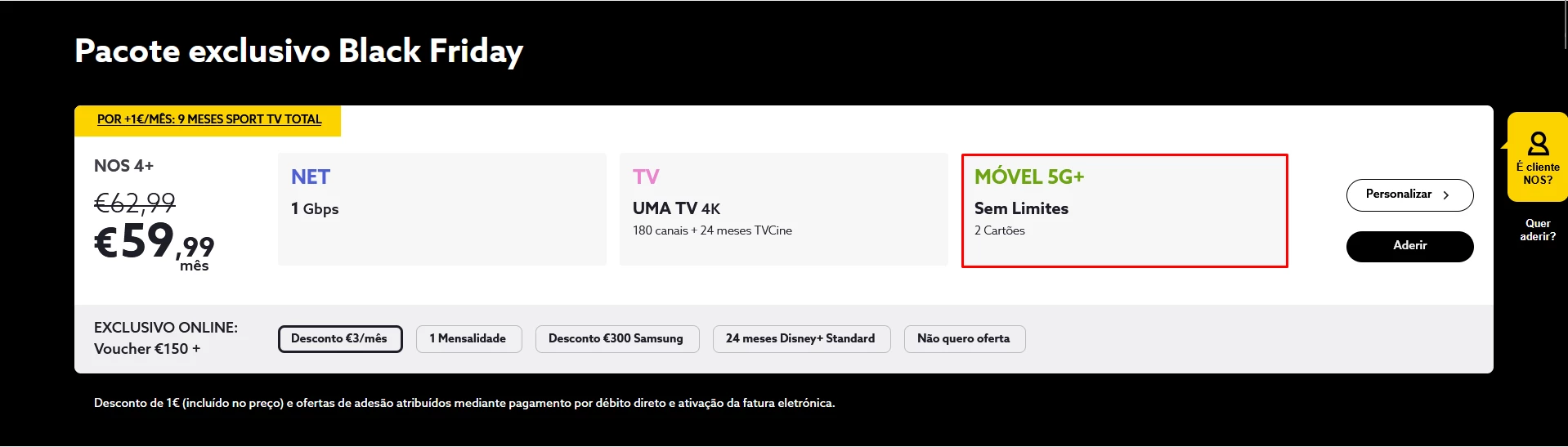 Contudo, isto não é de todo aceitável, usarem a designação de 5G+ nos pacotes e depois haver publicidade no vosso site onde fazem referência ao 5G+ e as suas vantagens, mas só estão disponíveis para determinados pacotes pós-pagos e os pacotes de NOS 4 com a mesma referência não tem inclusos esses mesmos extras.