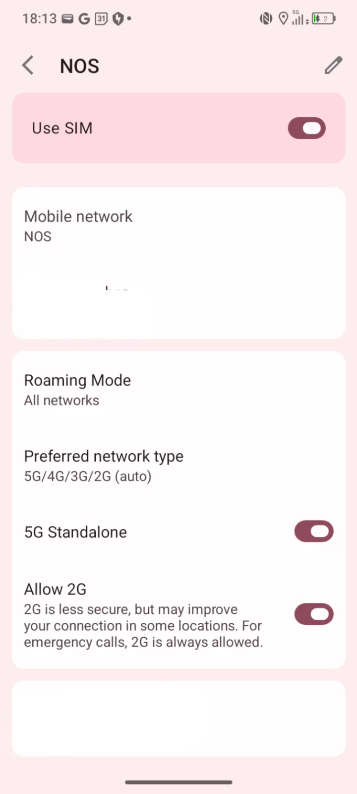Apenas tenho a opção 5G Standalone, e sim está ativada