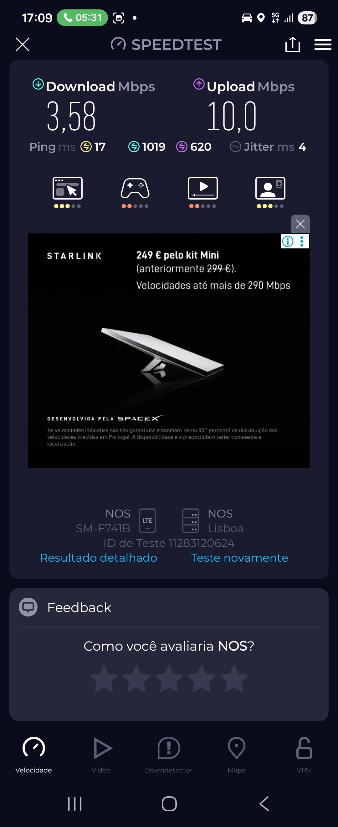 Sou cliente NOS há mais de um ano. Desde que mudei da Vodafone para a NOS, fiquei satisfeito por ver que a velocidade do meu telemóvel 5G não estava limitada a 300 Mbps, como na Vodafone, e alcançava os 1000 Mbps completos.