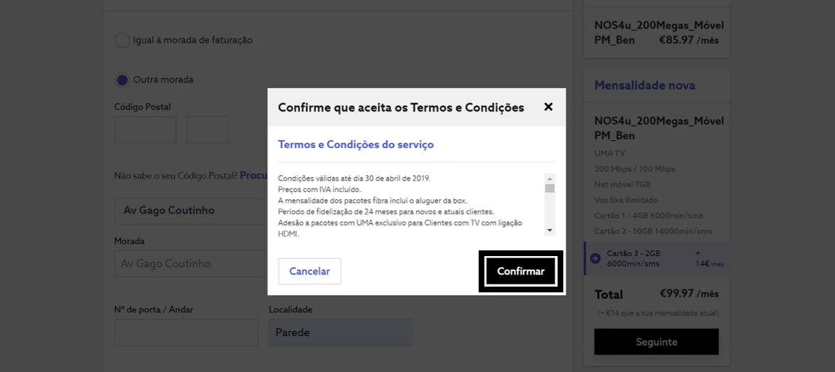 - Leia, aceite os Termos e Condições serviço e selecione "Confirmar";