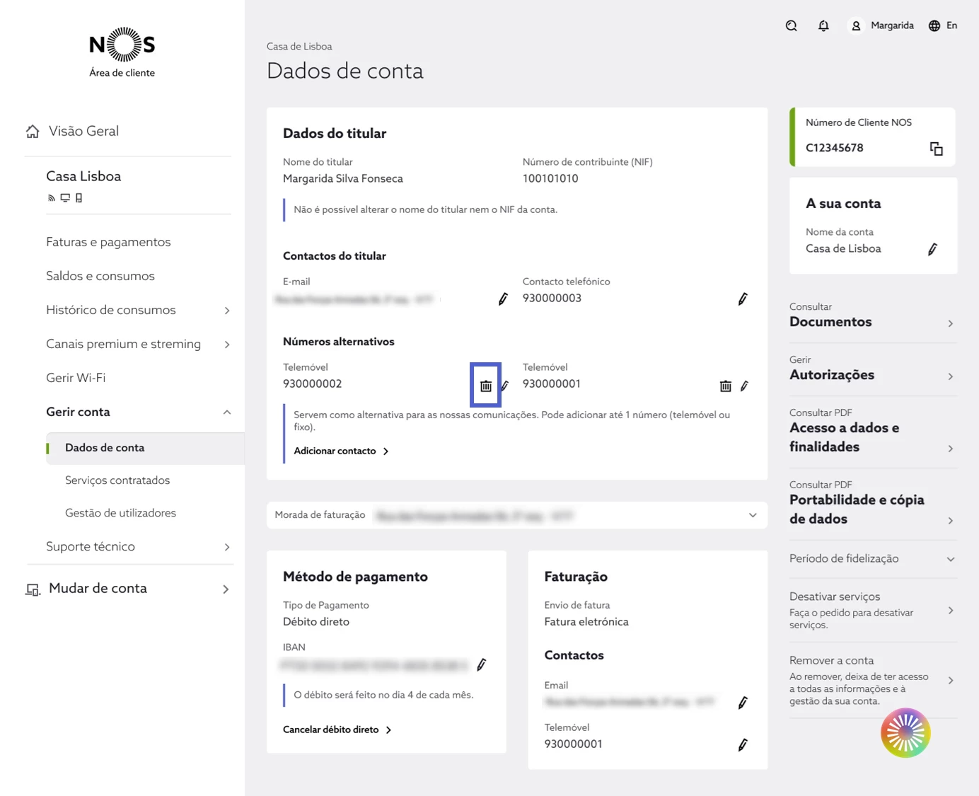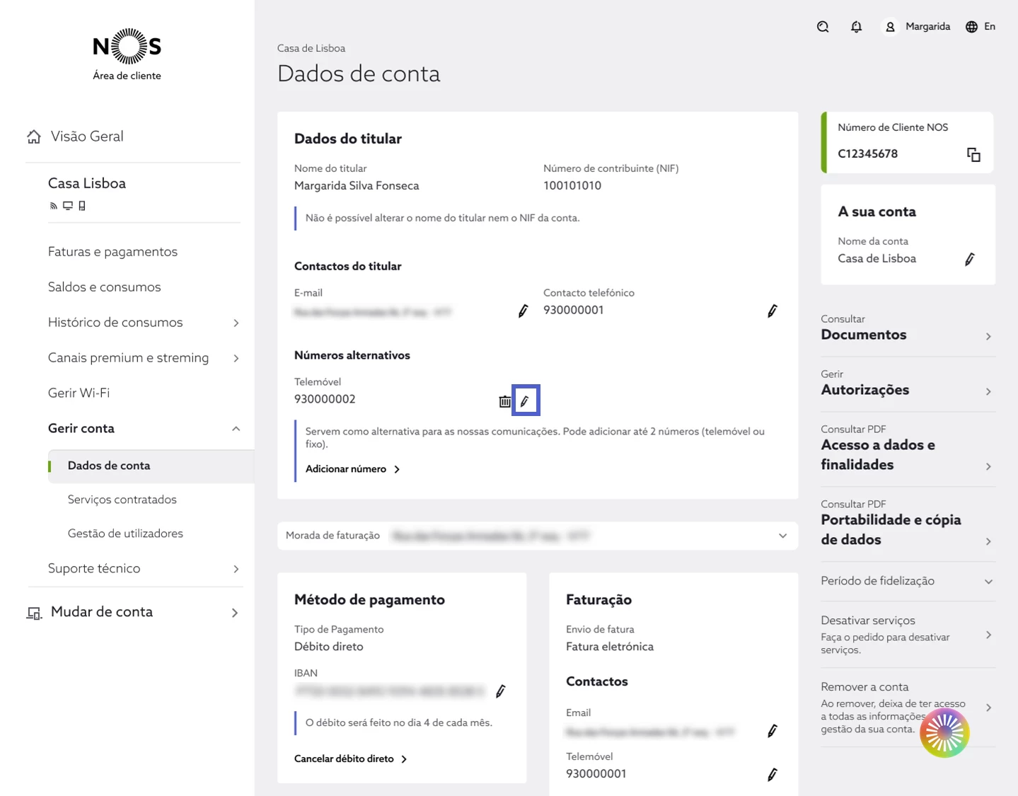 Saiba como remover o número alternativo em my.nos.pt ao seguir os passos abaixo: