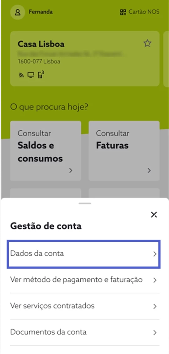 - Aceda à app my NOS e, em “Menu”, selecione “Gestão de Conta”;