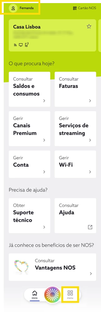 - Aceda à app my NOS e, em “Menu”, selecione o seu “Perfil”, no canto superior esquerdo;