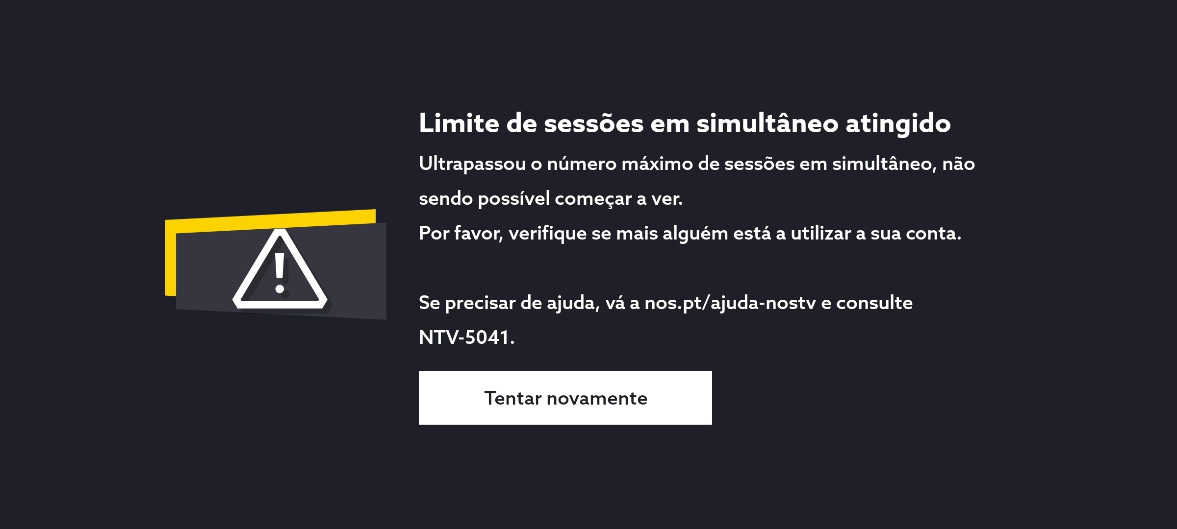 - Ao aceder à App NOS TV, surge a notificação de que atingiu o número de equipamentos registados;