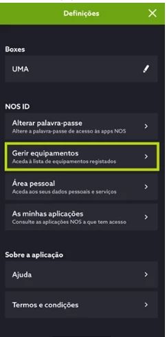 - De seguida, em NOS ID, escolha “Gerir equipamentos”;