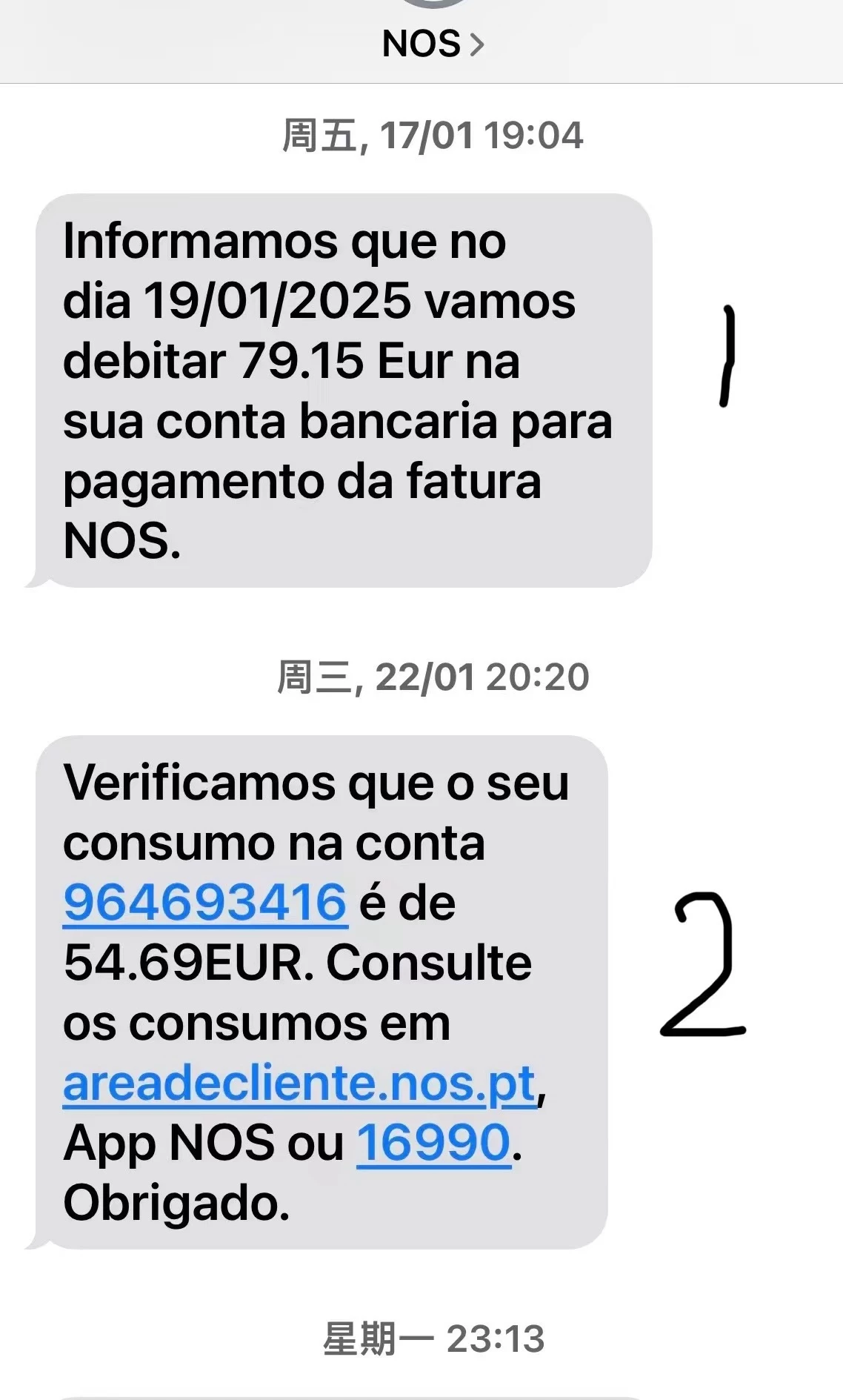 On January 22, I received a payment notification from NOS stating that I need to pay €54.69 for a charge linked to the phone number 96469693416, which I have never authorized. On January 27, I received another message indicating that this amount had been added to my phone bill. However, when I contacted your customer service team, I was informed that this number belongs to another operator and was asked to verify it myself. If this number indeed belongs to another operator, why did NOS send me a payment notification and include the charge in my bill? This situation has left me confused and unable to accept such an explanation.