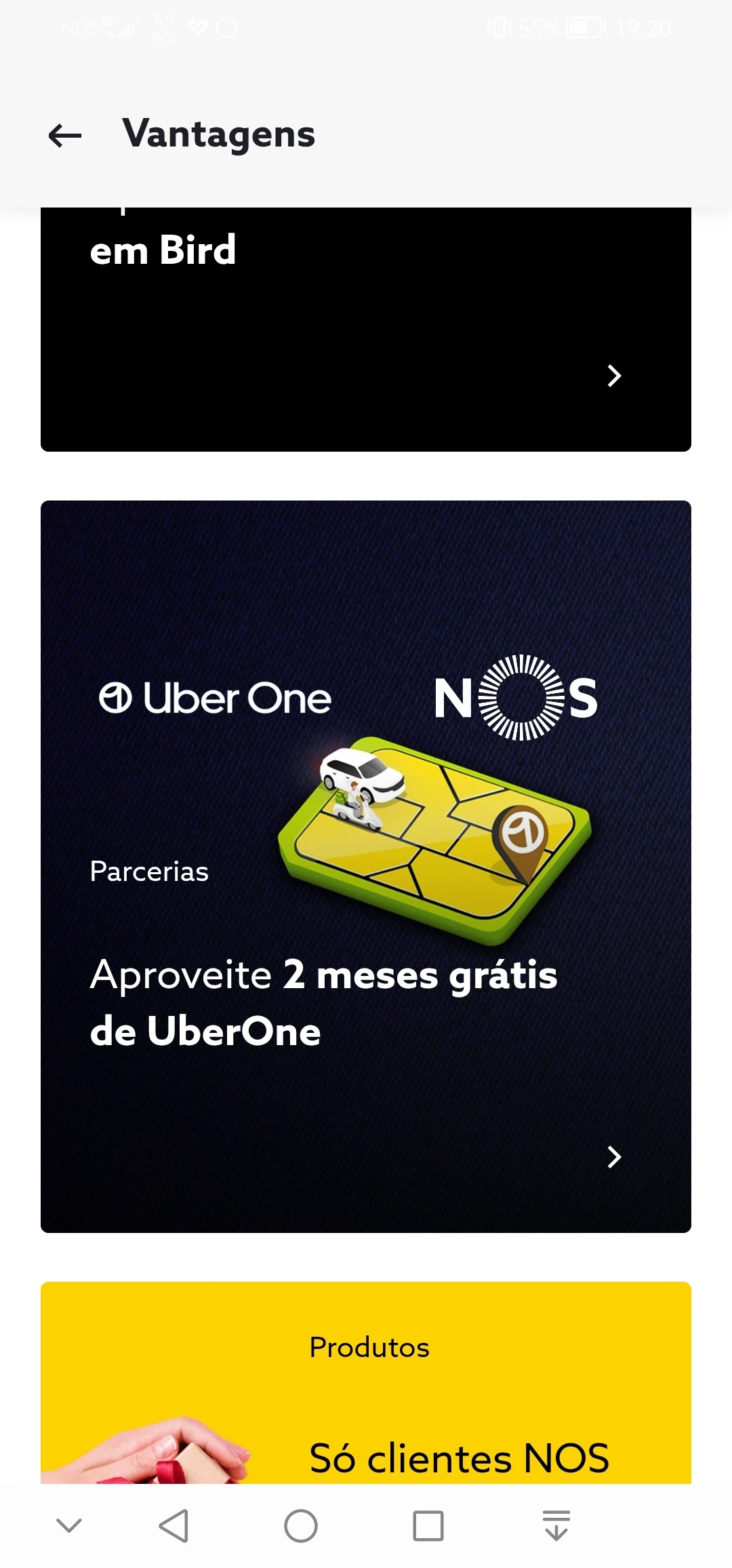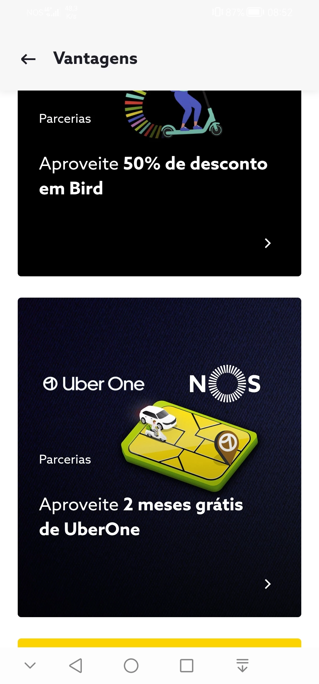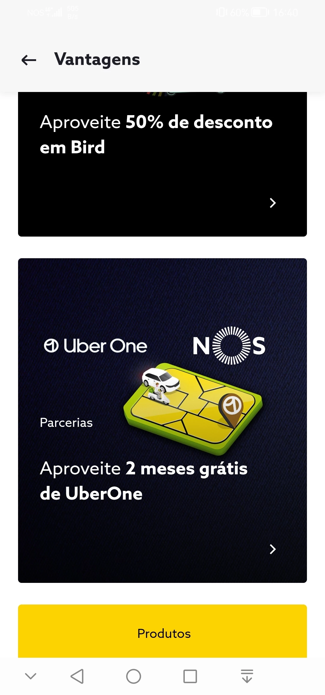 Sou cliente Nos,ou pelo menos tenho alguns serviços Nos dos quais pago faturas mesmo alguns deles estarem com deficiências, e nas vantagens Nos existe a publicidade de 2 meses grátis uberone, pois a mim app diz que a oferta já acabou embora continuae a publicitar.…
