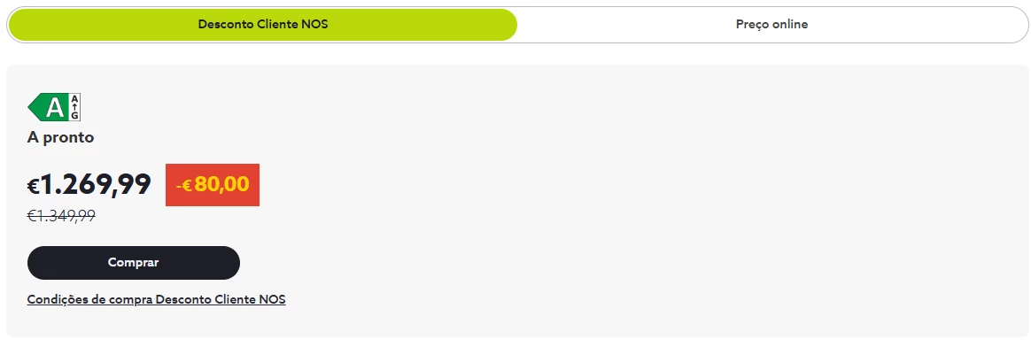 Após a compra de um telemóvel verifiquei que para cliente NOS sendo eu vosso cliente com fibra o valor ficaria a “1269,99”