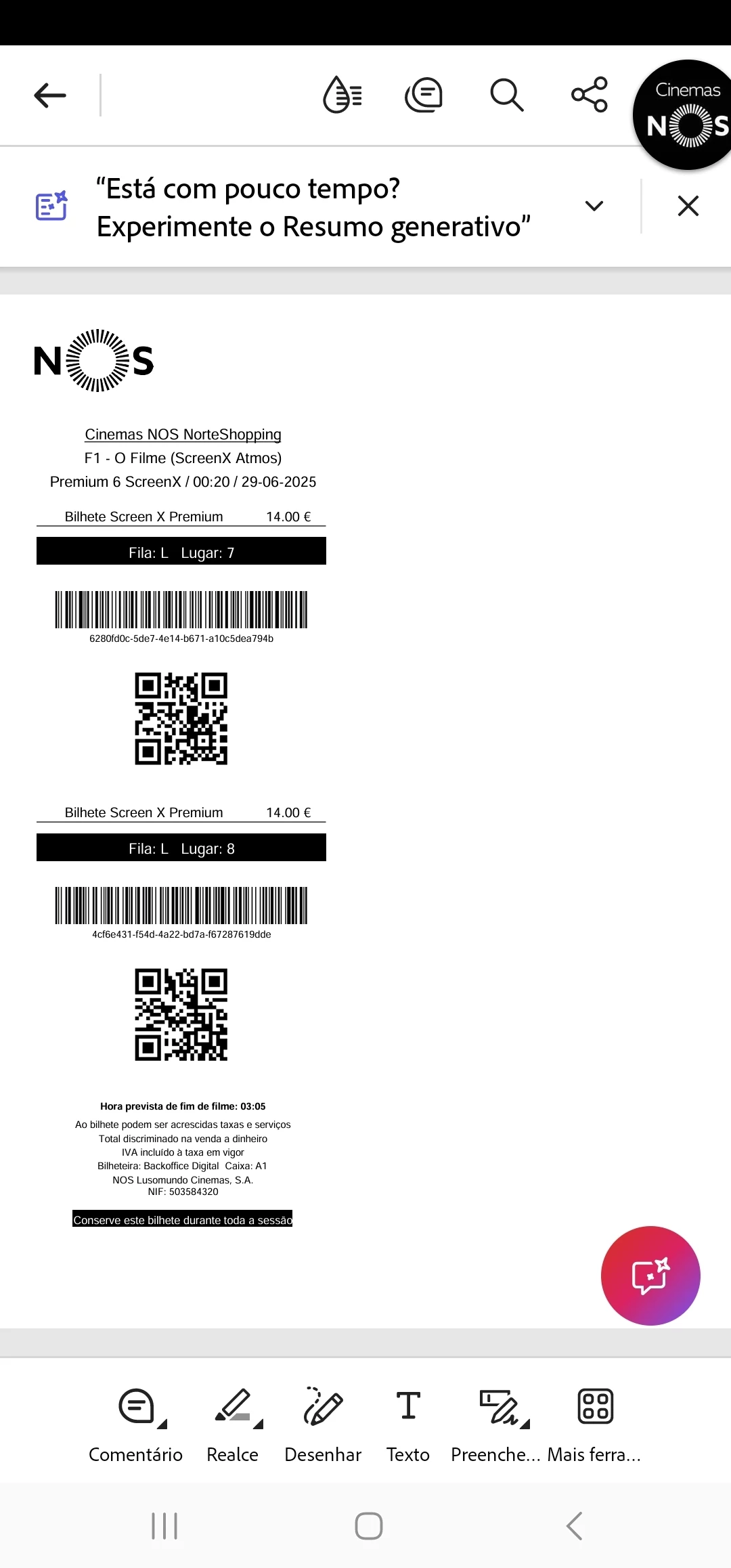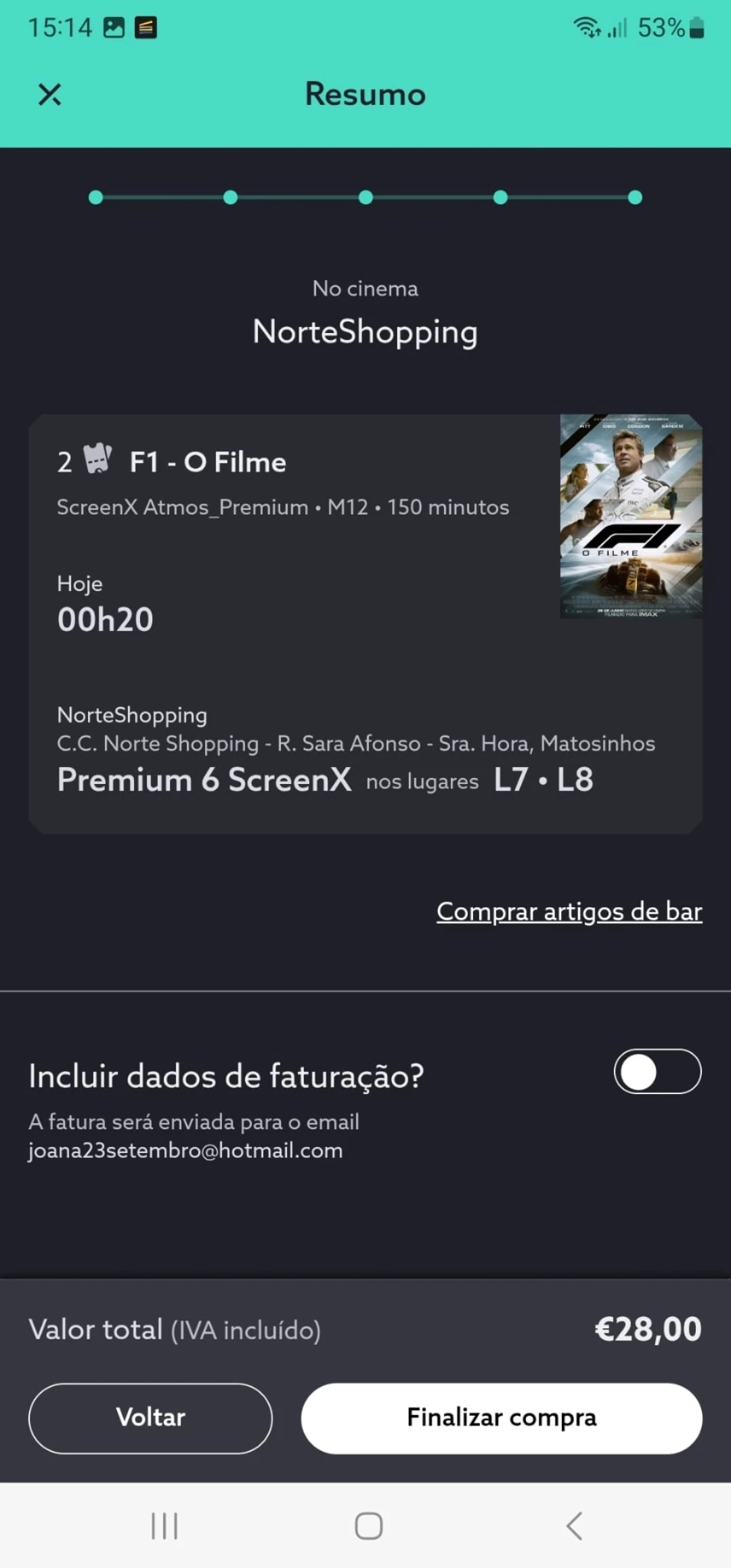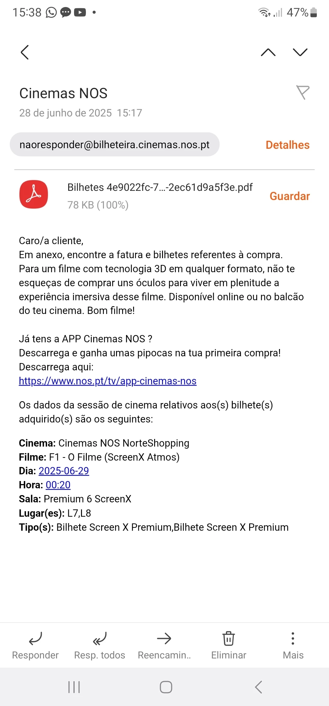 Efetuei hoje a compra de 2 billhetes para a sessão das 00:20 de hoje, dia 28/06, no entanto na aplicação os bilhetes estão para o dia de amanhã 29/06, efetuei o processo duas vezes! Das duas vezes feitos com sucesso e no entanto a aplicação colocou para o dia seguinte, e com isto já gastei mais de 50!