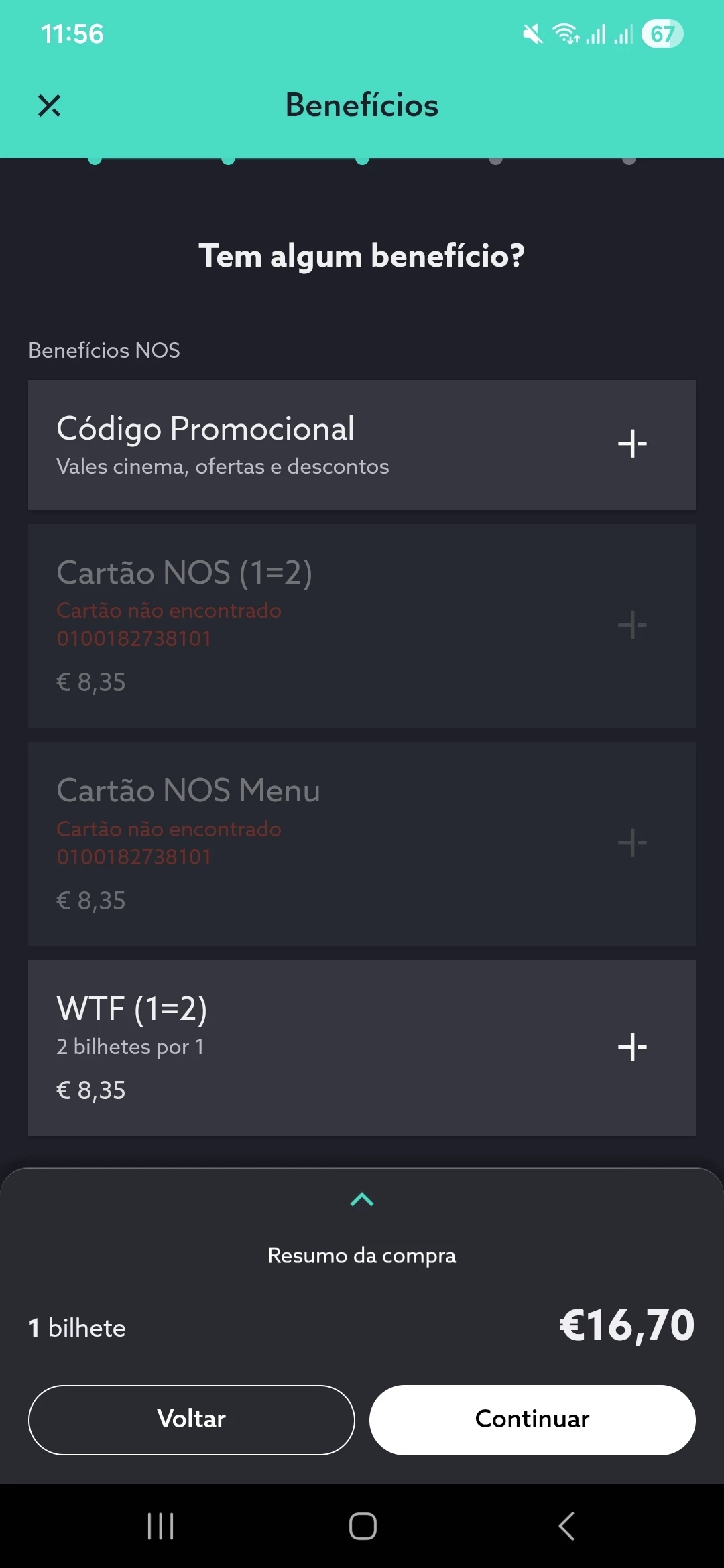 O tempo passa e continuo com o mesmo problema, fiz o login em todas as aplicações e consigo aceder ao cartão e ao número. Simplesmente não consigo selecionar a opção de o desconto 2 por 1 pelo meu cartão não ser encontrado.