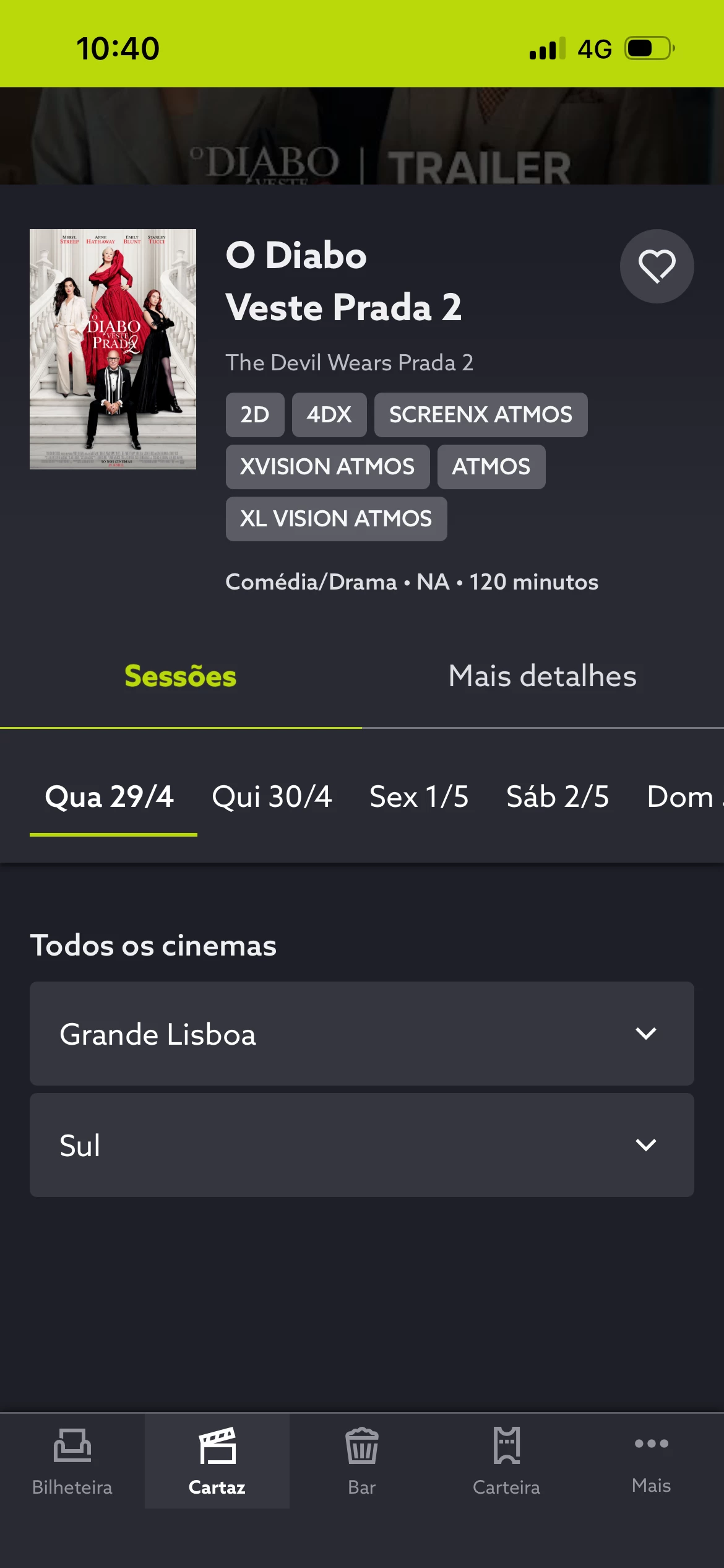 Agradecemos a sua mensagem. As sessões para o filme estão a ser atualizadas. 😊