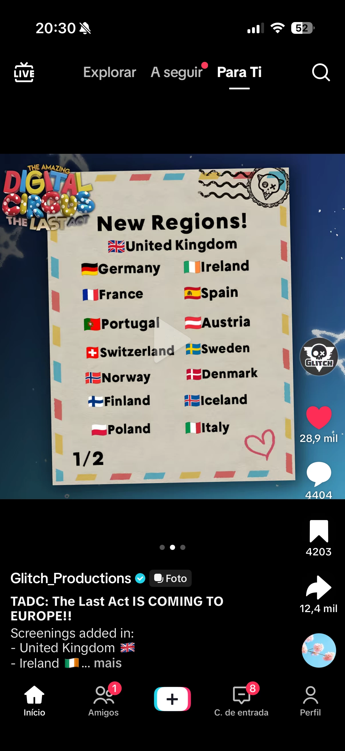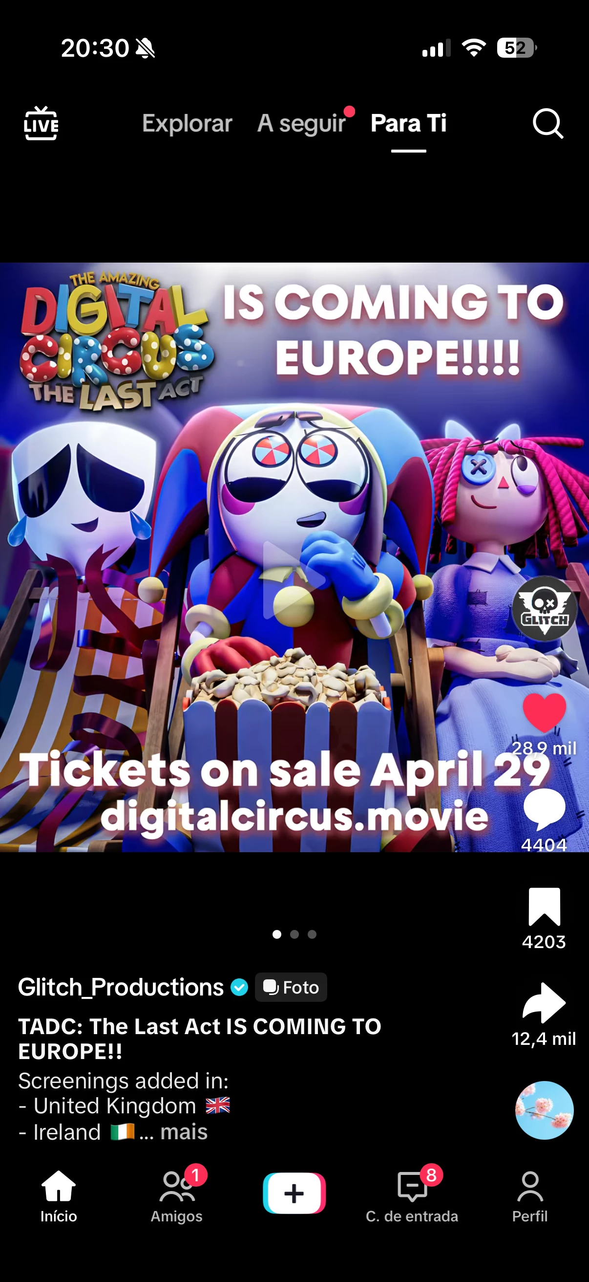 Gostaria de sugerir a exibição em Portugal de The Amazing Digital Circus: The Last Act, um evento especial que reúne os dois episódios finais da série The Amazing Digital Circus, produzida pela Glitch Productions.