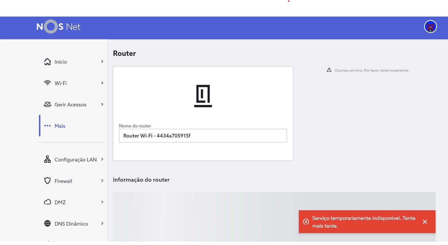 - Aceda a nosnet.pt , com os seus dados de acesso NOS ID, e de seguida, em “Mais”, escolha “Router”;