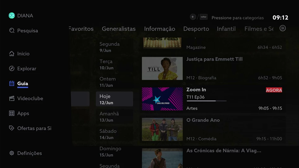 Encontre mais facilmente o dia, canal ou programa que deseja com a nova organização por categorias. Crie a sua lista de favoritos e não perca nada.