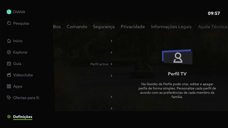 Ao criar o seu próprio perfil pode definir os seus canais favoritos, o idioma do menu e depois de estar a utilizar a box terá acesso a recomendações de conteúdos de acordo com os seus gostos.