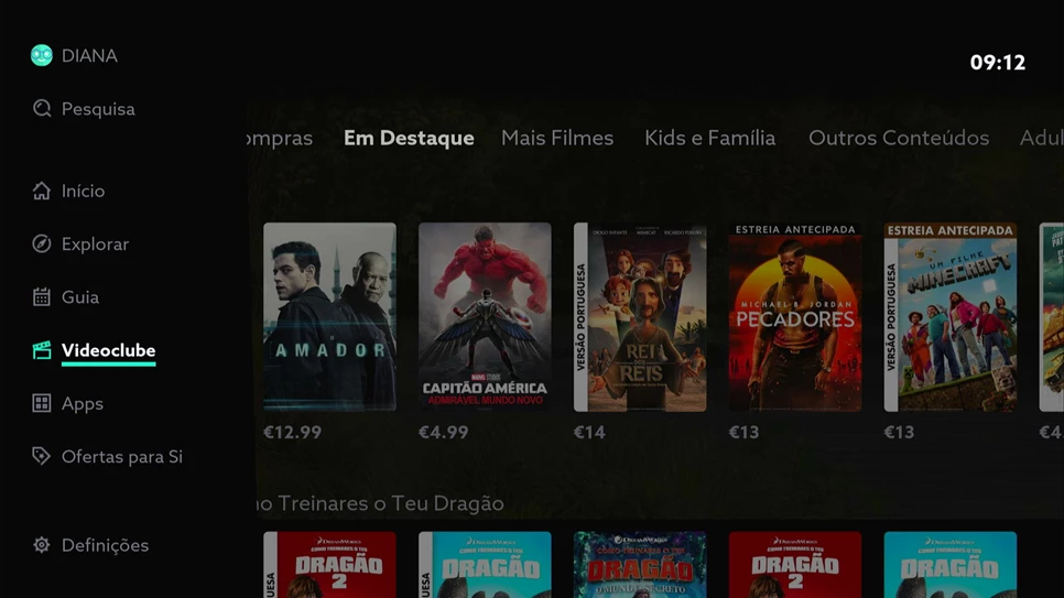 2. Pressione OK na área “Videoclube”;