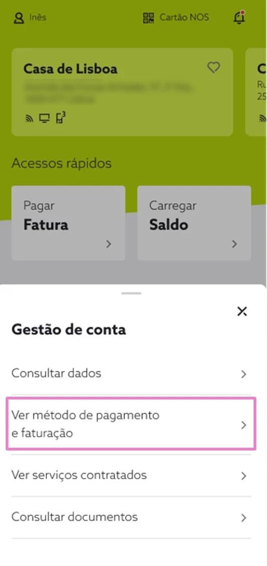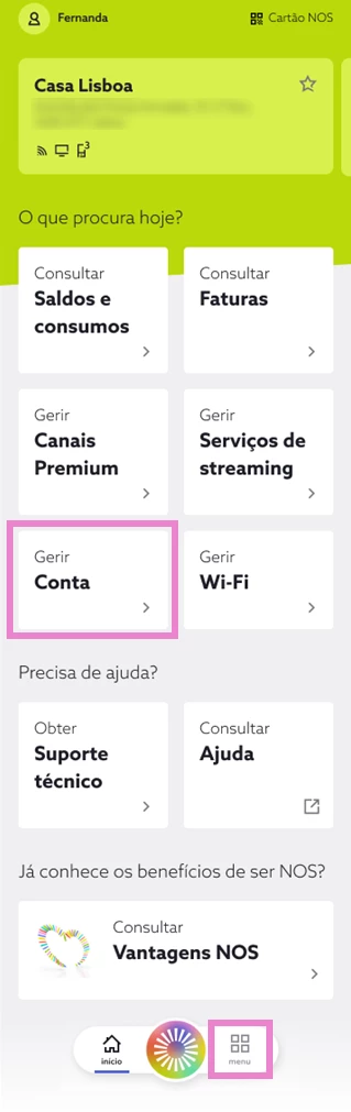 1. Aceda à app my NOS e em “Menu” selecione “Gerir Conta”;