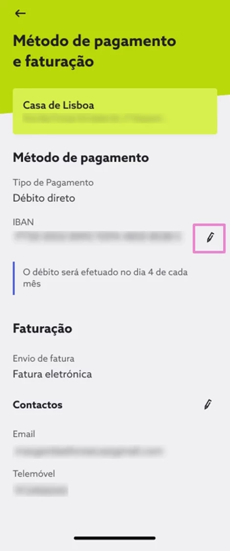 Para alterar o IBAN do débito direto na app my NOS, siga a explicação abaixo: