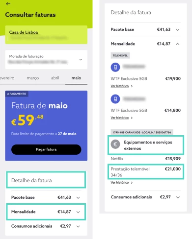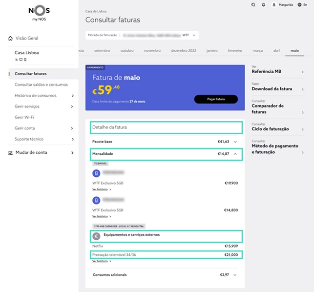 Saiba também como consultar as prestações em falta do acordo de pagamento e a última fatura na my NOS:
