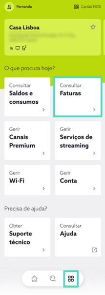 - Aceda à app my NOS e, em "Menu", selecione "Consultar Faturas";