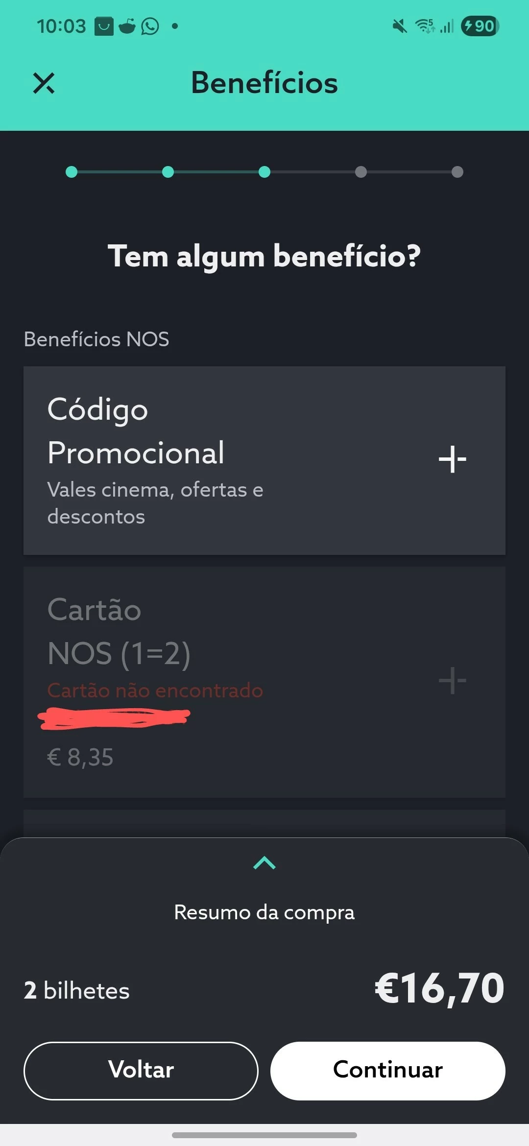 Cartão NOS não aceite na compra de bilhetes de cinema?
