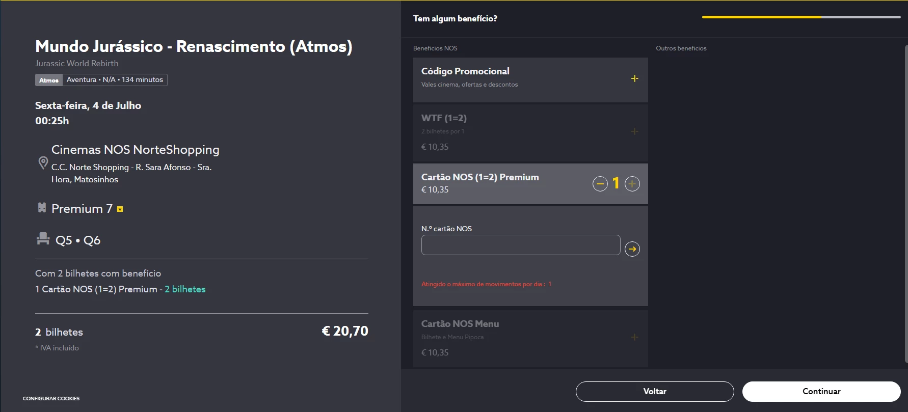 Quantas vezes posso usufruir do desconto cinema NOS?