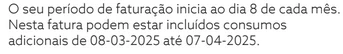 É neste último ponto que julgo que haverá algum engano. A período de faturação desta minha conta, vai até dia 07 do mês. Ora se o pedido de cancelamento foi feito no dia 21/04/2025, foi feito com mais de 10 dias de antecedência.