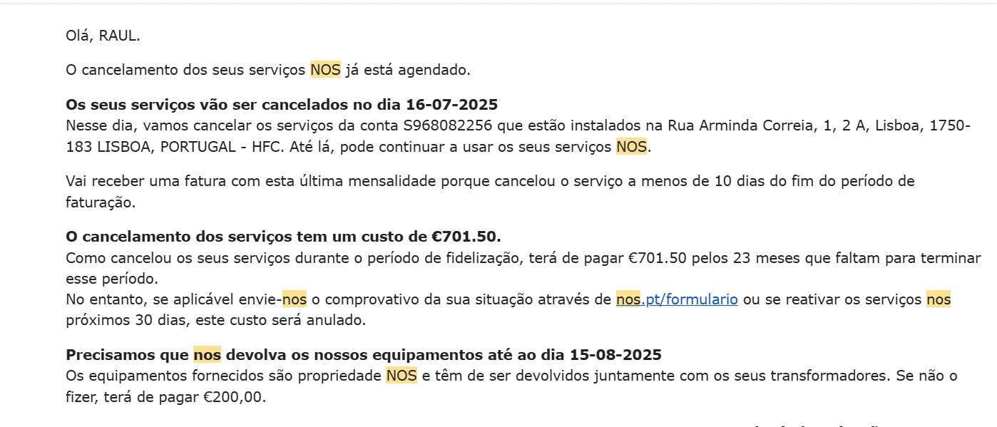 Informamos que nas situações em que existiu deslocação do técnico, o valor da instalação é devido, já que o serviço foi plenamente executado e a NOS já incorreu em custos.