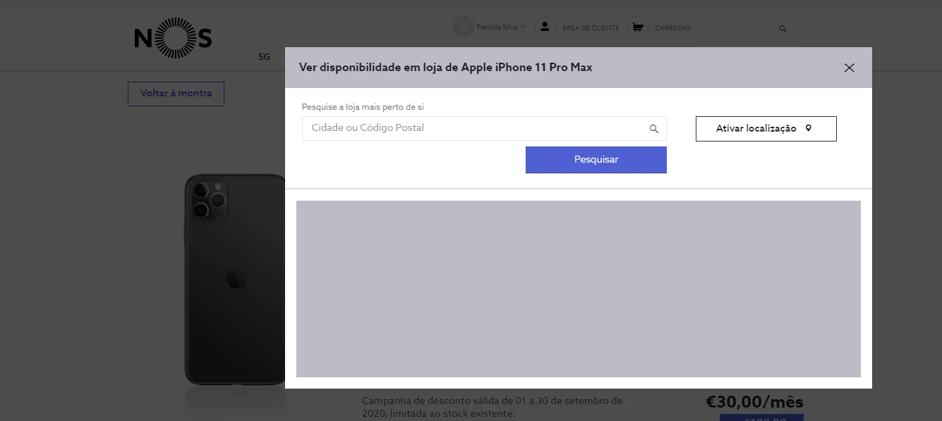 Estou a tentar efectuar a compra de um iPhone 11 Pro max de 256gb, on line não está disponível mas informa que existe em loja. Como posso saber a loja que está disponivel???