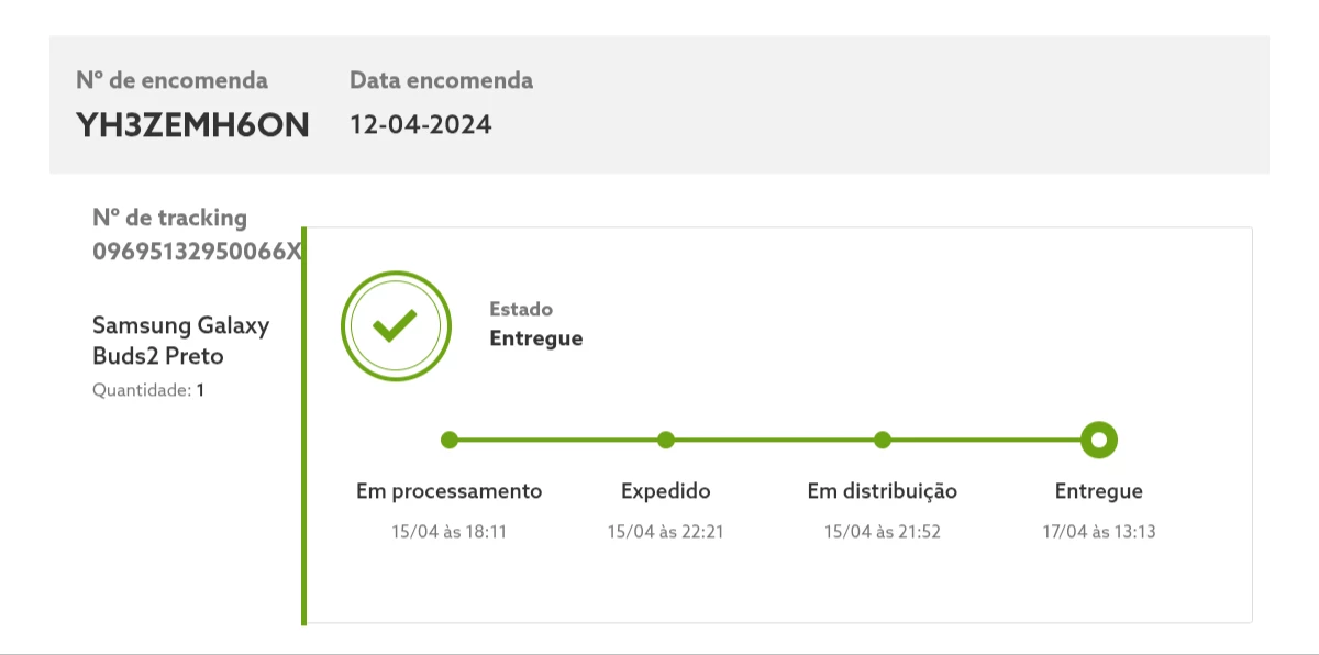 Em Abril de 2024 fiz a compra de uns Galaxy Buds Samsung através da página online da NOS.