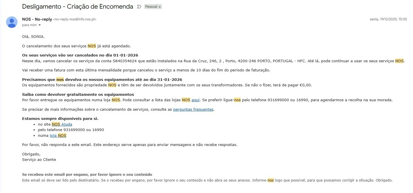 Agora, a 11 de janeiro de 2026, recebo o e-mail seguinte: