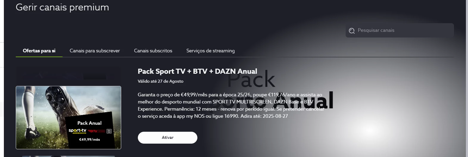 Ola, tenho uma crianca em casa que esta semana subscreveu sem querer o Pack SPORT TV+BTV+DAZN Anual. Ontem reparei e desativei logo. Ja li neste forum que pelo menos 30 dias é o minimo a pagar. Isso tambem é valido para este pack anual se for logo desativado? Para cancelar basta desativar na app? Ou é preciso ligar ou enviar mail por ser um pack anual?