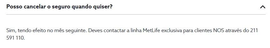 No início de junho, ao analisar a minha fatura, reparei pela primeira vez na cobrança deste serviço. Contactei o vosso apoio ao cliente, tendo-me sido dito que o mesmo teria sido subscrito presencialmente com um agente da MetLife numa loja NOS. Refiro, no entanto, de forma inequívoca, que nunca me desloquei a qualquer loja NOS, tratando sempre todos os assuntos exclusivamente por telefone.