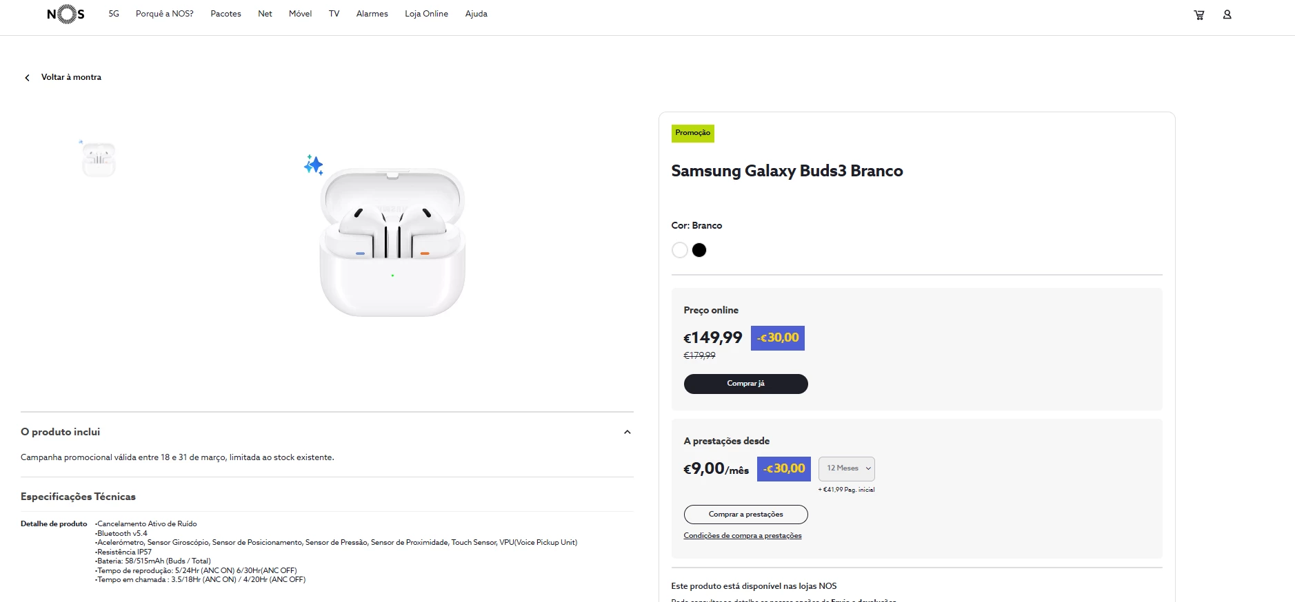 Estou interessado em adquirir uns samsung galaxy buds3 Pro na loja online da NOS.