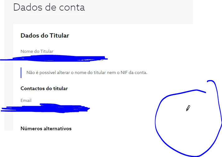 3. Veja os dados da sua conta e, em “Contacto do titular”, selecione o ícone do lápis;