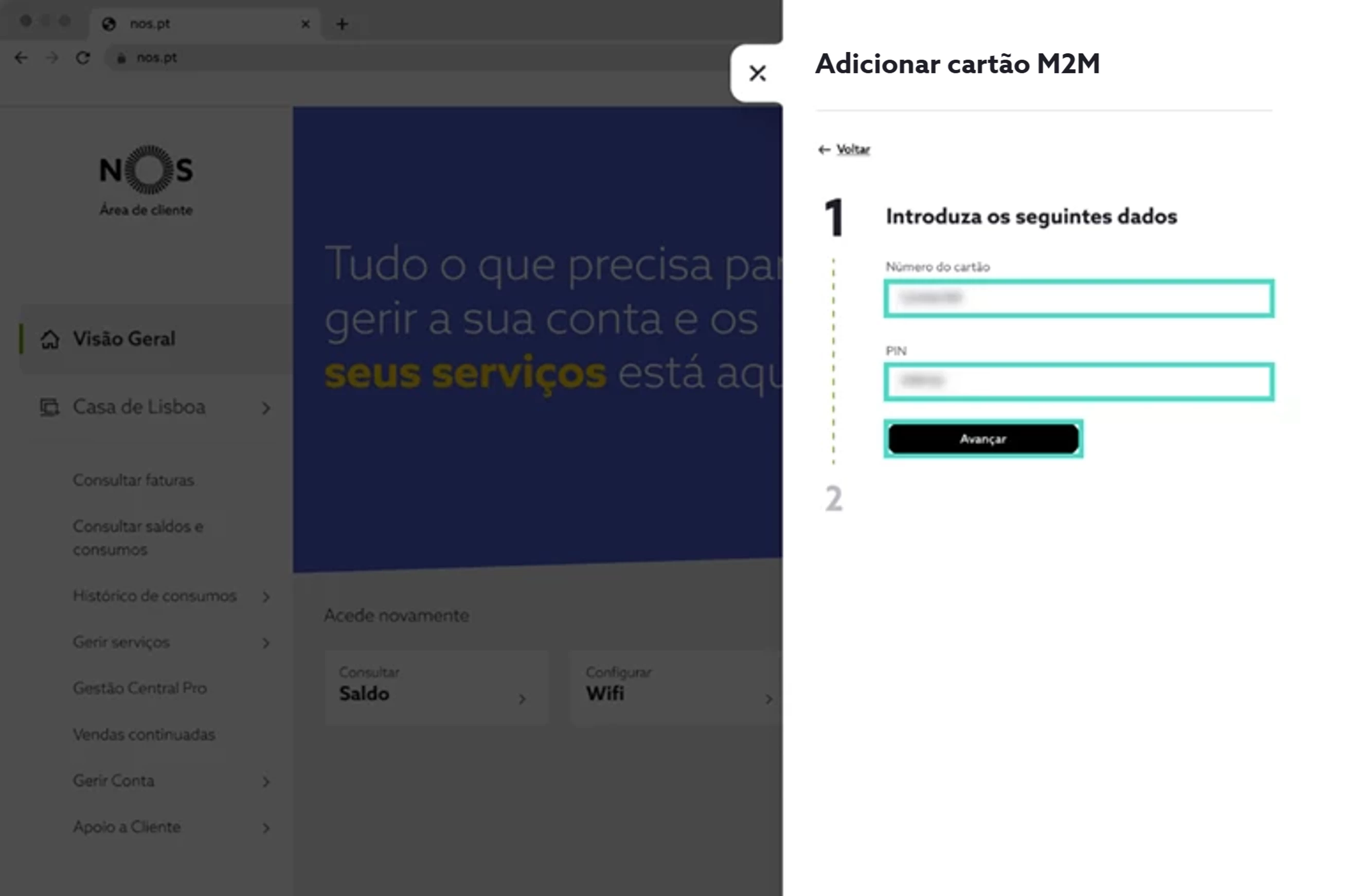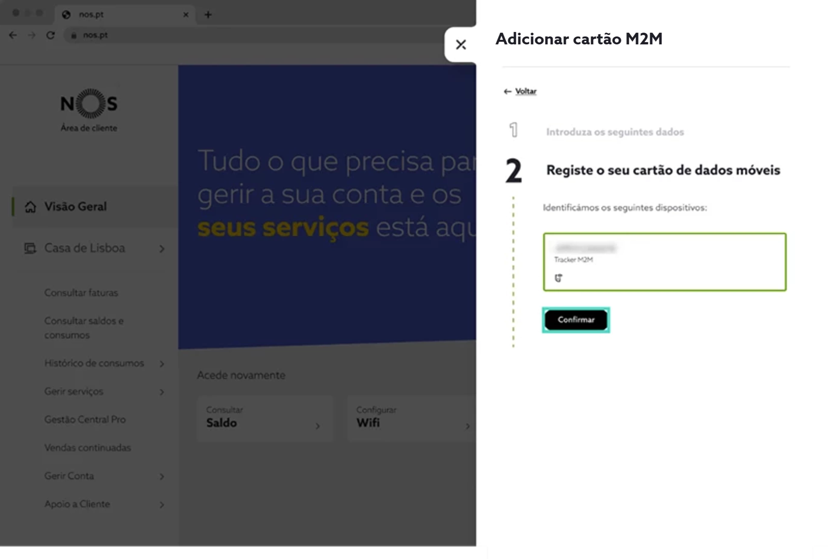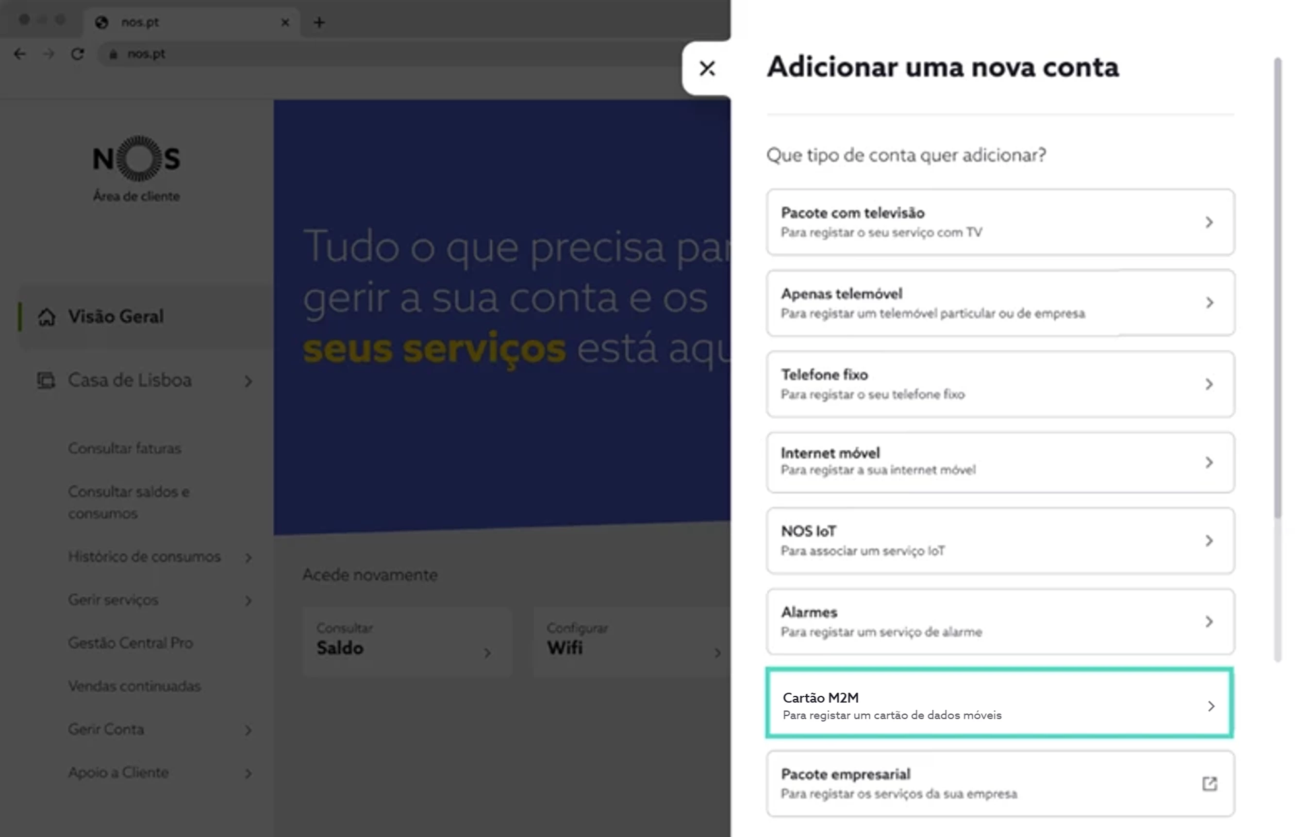Para associar o cartão M2M em my.nos.pt, siga os passos abaixo:
