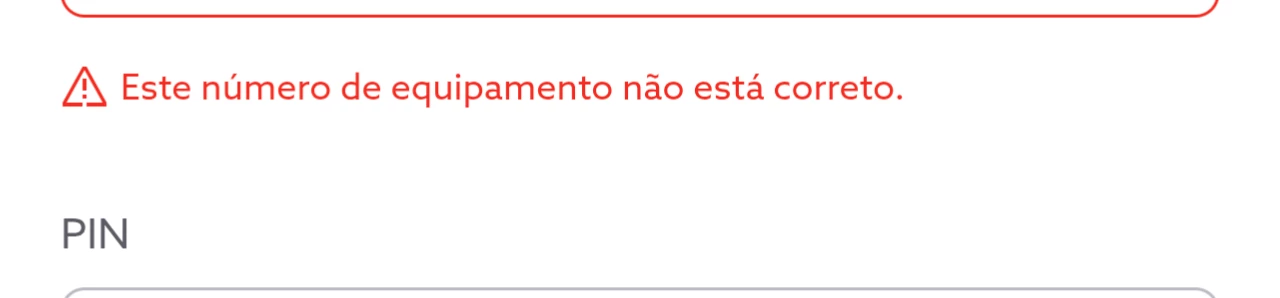 Ao adicionar o número e o pin aparece “O Número do equipamento introduzido não está correto.”