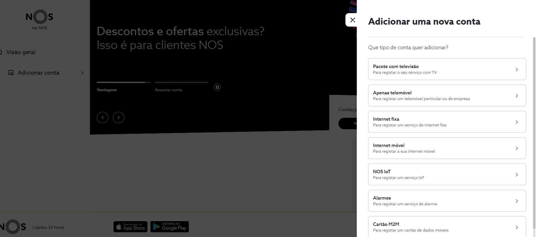 Saiba, também, como definir a conta favorita e como associar serviços na my NOS: