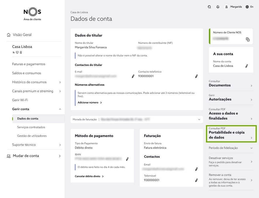 Consultar o documento PDF de Portabilidade e cópia de dados na my NOS