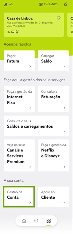 Aceda à app my NOS e, em “Menu”, selecione “Gestão de Conta”;