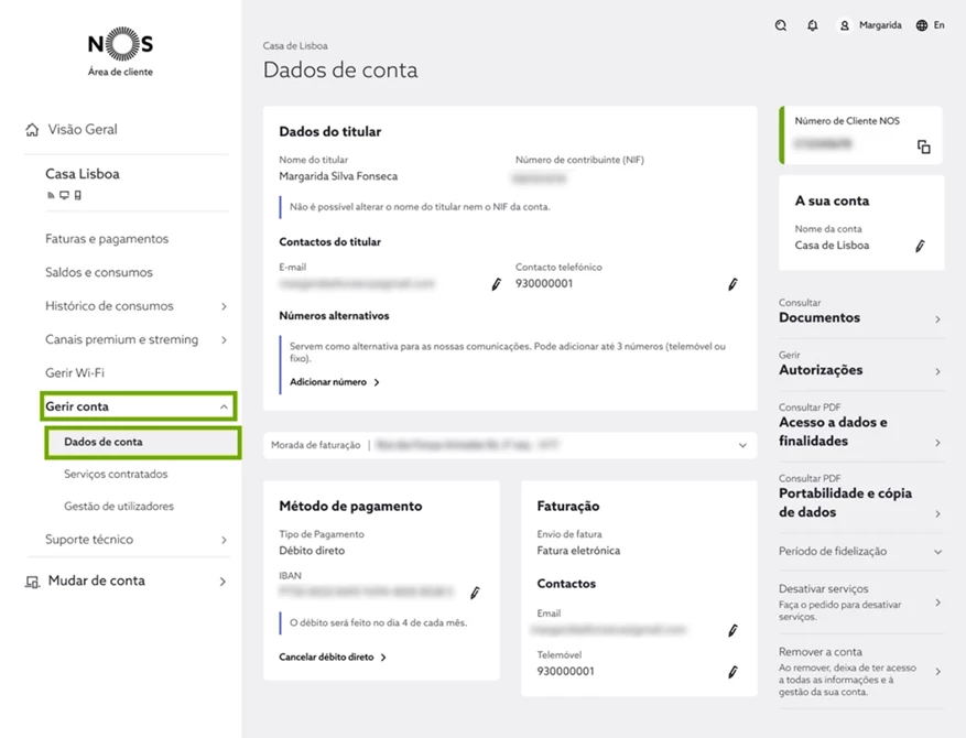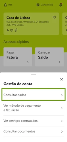 Aceda à my.nos.pt e, em “Gerir Conta”, selecione “Dados de conta”;
