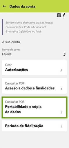 Selecione “Consultar PDF Portabilidade e cópia de dados” para descarregar o documento;