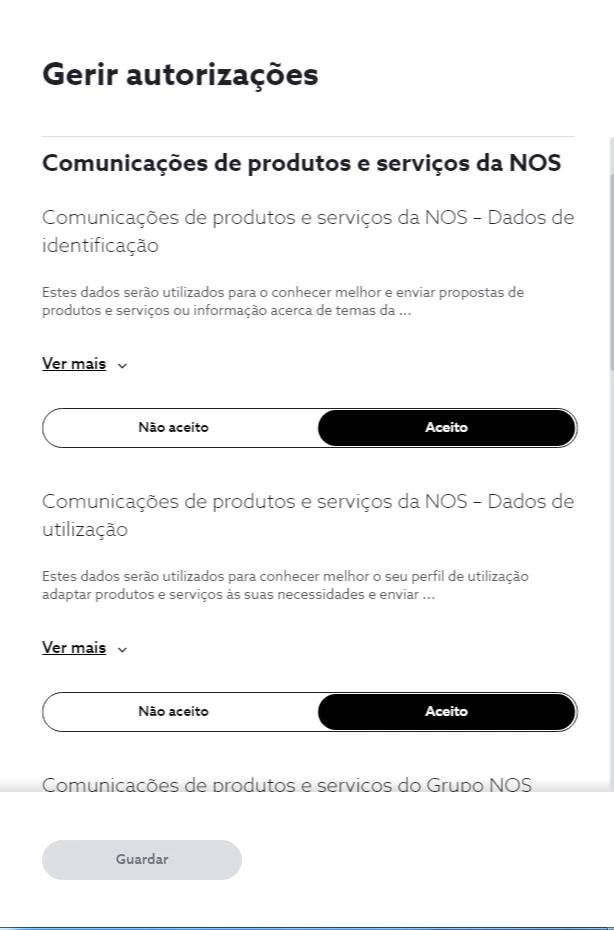 Neste artigo pode consultar o processo de gestão das suas autorizações de contacto através da my NOS. Desative as autorizações que não pretende.