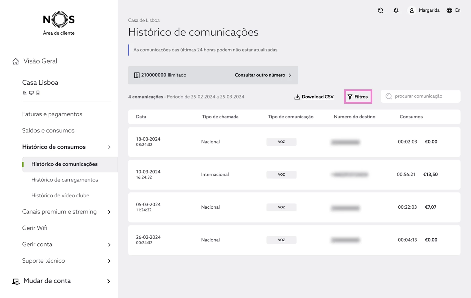 Como consultar o detalhe de comunicações do Telefone Fixo na my NOS