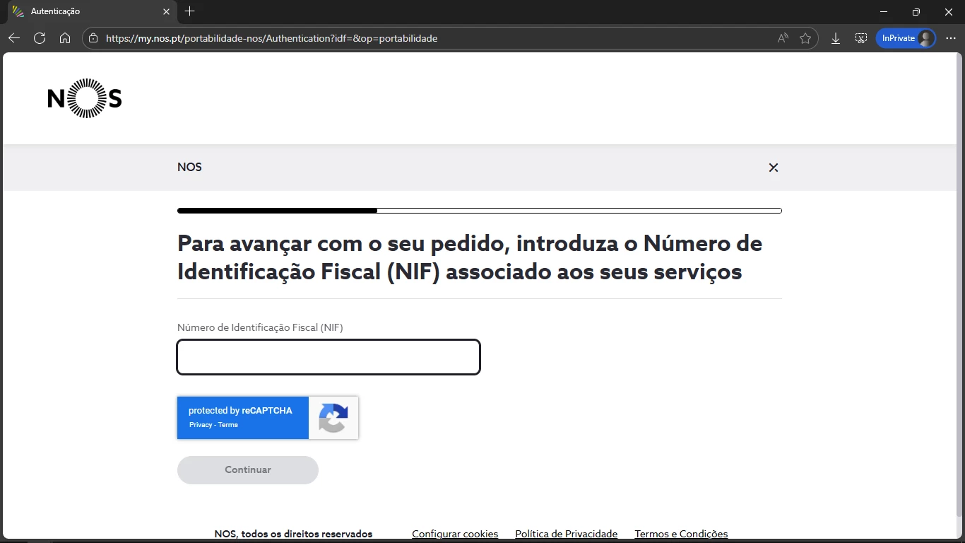- Introduza o seu número de identificação fiscal (NIF) para confirmar a sua identidade e selecione “Continuar”.