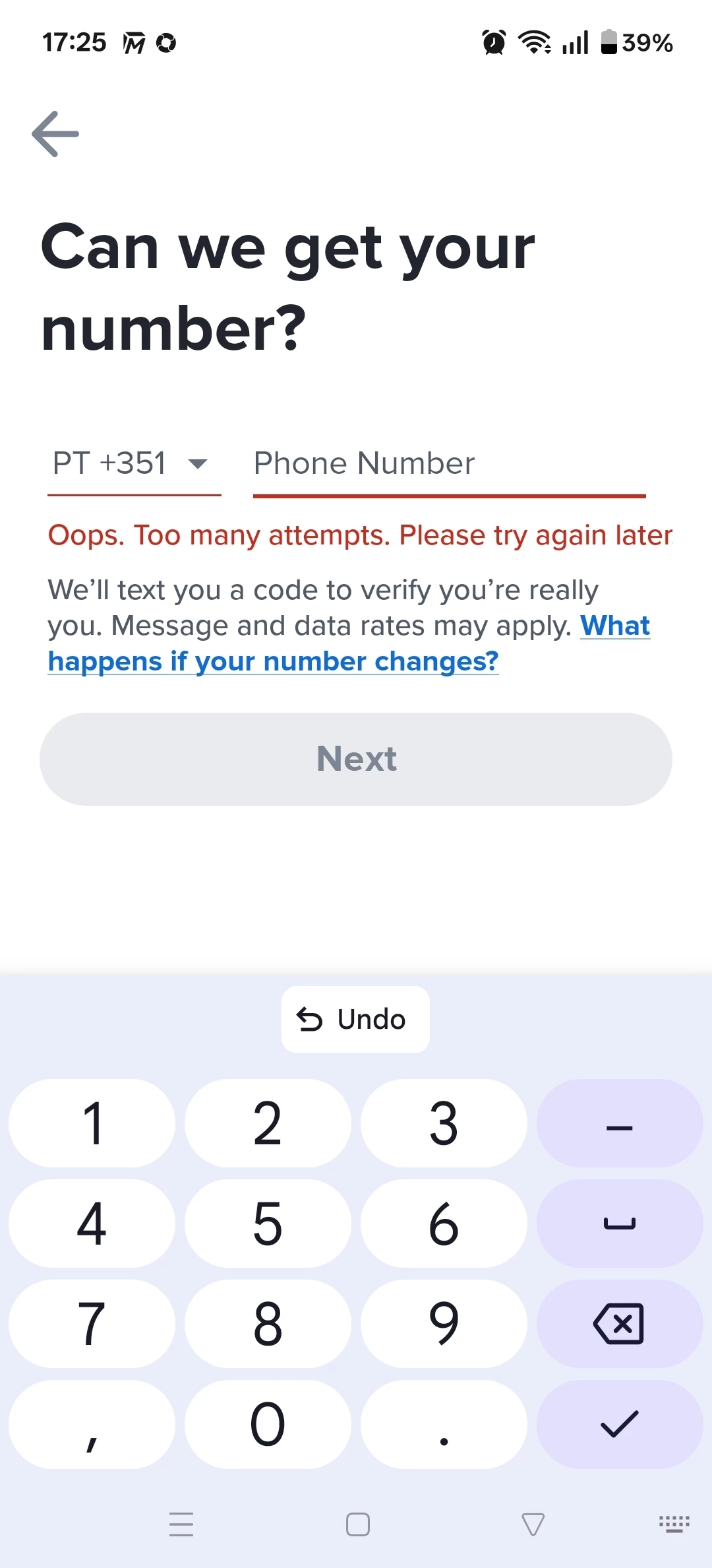 Acontece que já passaram mais de 48 horas e, ainda assim, ainda me surge o mesmo aviso. Após as 48 horas contactei o serviço de apoio ao cliente do Tinder, que me informou de que o bloqueio poderá ter origem por parte da operadora, quando ao envio do código de acesso por SMS.