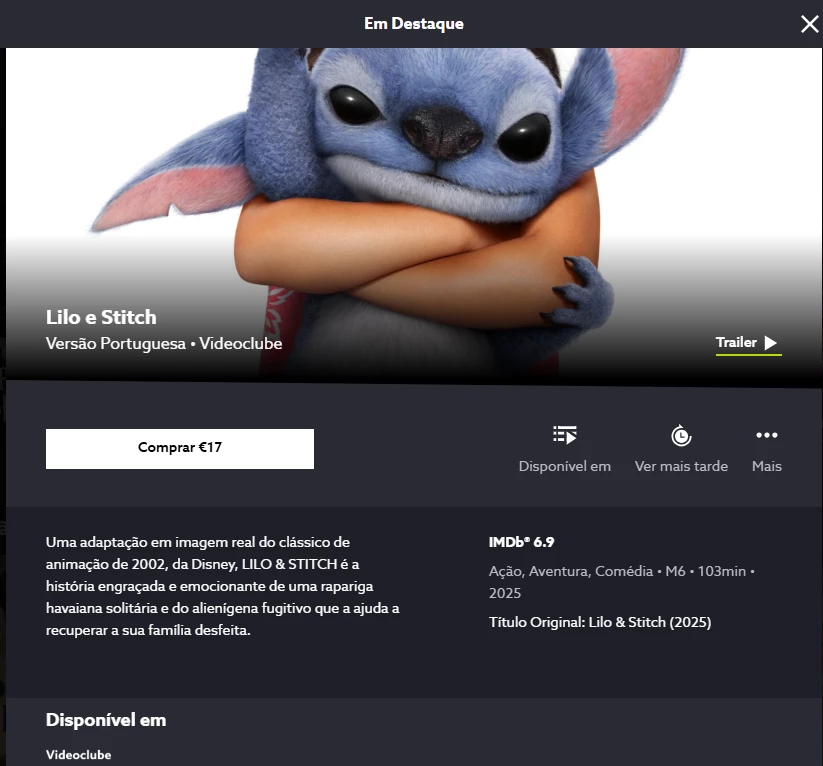 Um filme? 14,99€? Qual, com que aparelho do acesso? Com qual chave de acesso? Como referi era impossível o acesso..