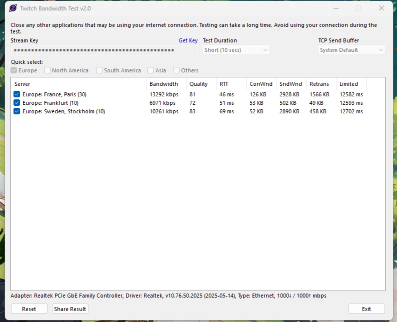 Já realizei o 'Twitch Bandwidth Test' e a qualidade da ligação não passa dos 70-80%, o que indica perda de pacotes (Packet Loss) severa.