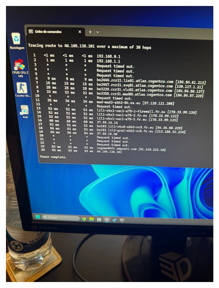 Nos últimos dias notei que o ping para servidores em França (OVH/OMGServ – AS16276) aumentou de forma permanente e consistente. Jogava habitualmente com ~34 ms, e agora tenho 53–55 ms fixos.