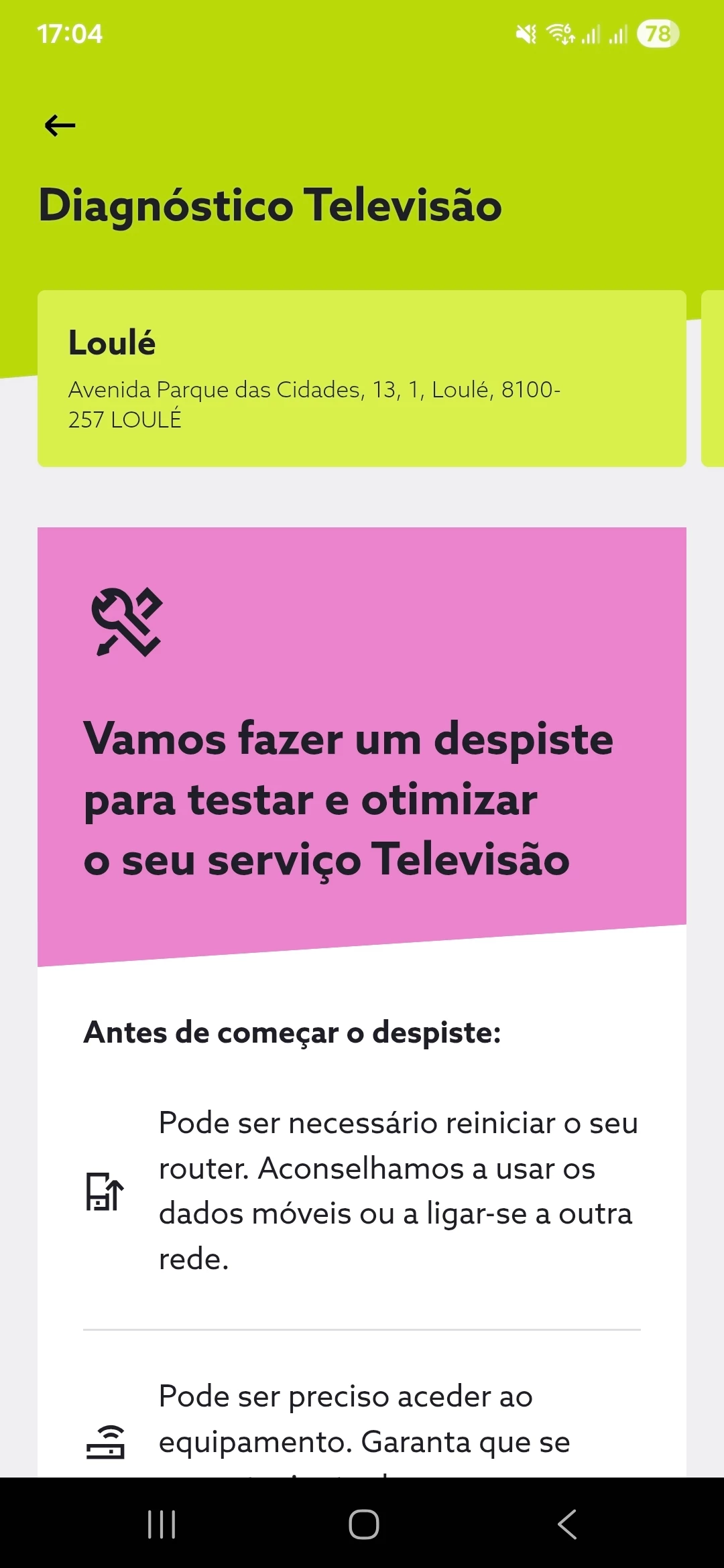 Para podermos ajudar, sugerimos que use a funcionalidade que assegura um processo de diagnóstico inteligente do seu serviço, identificando as ações de correção mais rápidas e eficazes para o seu caso.